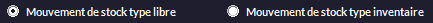 Si vous laissez coché Libre, votre mouvement apparaîtra dans l'historique (Article -> Mouvement Stock -> Historique) à la rubrique Libre/Fabric. Si vous cochez Inventaire, il apparaîtra à la rubrique Inventaire. La nature du mouvement diffère (ils ne sont pas enregistrés dans les mêmes tables). Attention, pour le mouvement de type Libre : Nouveau remplace Stock. Pour l'autre (type Inventaire), une variation de stock (négative ou positive) est créée.