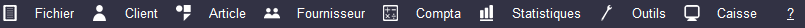 Les boutons sont des raccourcis vers les fonctions les plus courantes, les plus utilisées dans le logiciel. C'est aussi la partie appelée "Back Office" (vous retrouverez souvent le terme dans ce manuel).