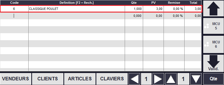 oEn mode quantité, le curseur se positionnera automatiquement sur la colonne Qté.