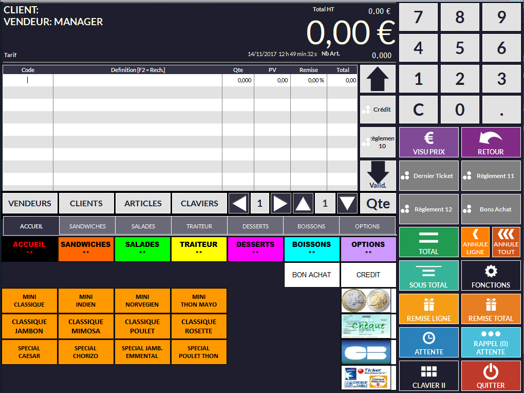 Toutes les fonctions suivantes sont détaillées dans La Vente - Caisse (Front Office) - Vente et Encaissement.