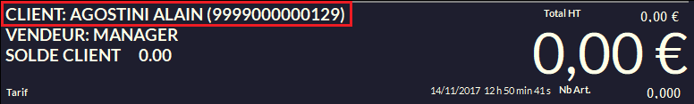 Le client (et son code unique) apparaissent ici :