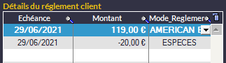 oDans Fichier -> Paramètres -> Modes Règlement Paiement, la colonne Cashback Autorisé permet d’autoriser un mode de paiement autre que CARTE "classique" (American Express par exemple) pour faire du CashBack. En revanche, il est impossible de le lier à un mode de paiement chèque/carte restaurant.