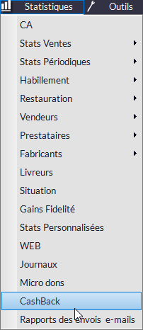 Il est possible d'accéder à un historique des opérations CashBack dans le menu Statistiques :