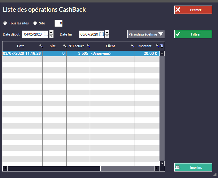 oLes opération CashBack ne sont permises que lors d'une vente.
