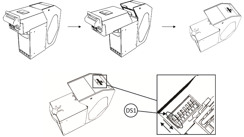 oLocalisez le DIP SWITCH 1 (DS1) placé au fond du recycler (cf. image ci-dessous).
