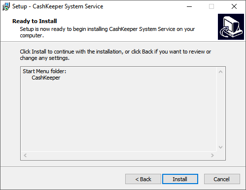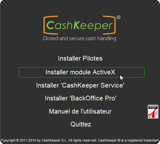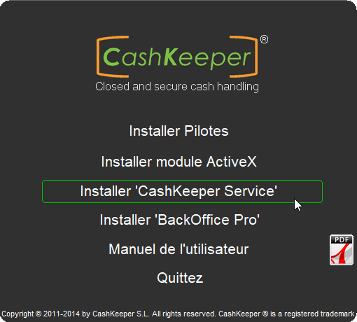 oRevenez sur l'écran principal et cliquez cette fois-ci sur Installer CashKeeper Service. Validez le message de confirmation :