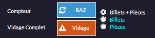 Permet de mettre à zéro les compteurs et/ou faire une vidange des espèces choisies.