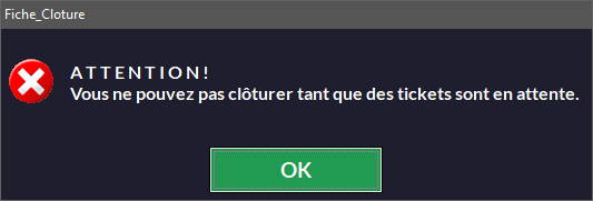 Si des tickets sont toujours en attente (cf. Ticket en Attente) le logiciel bloquera l'accès :