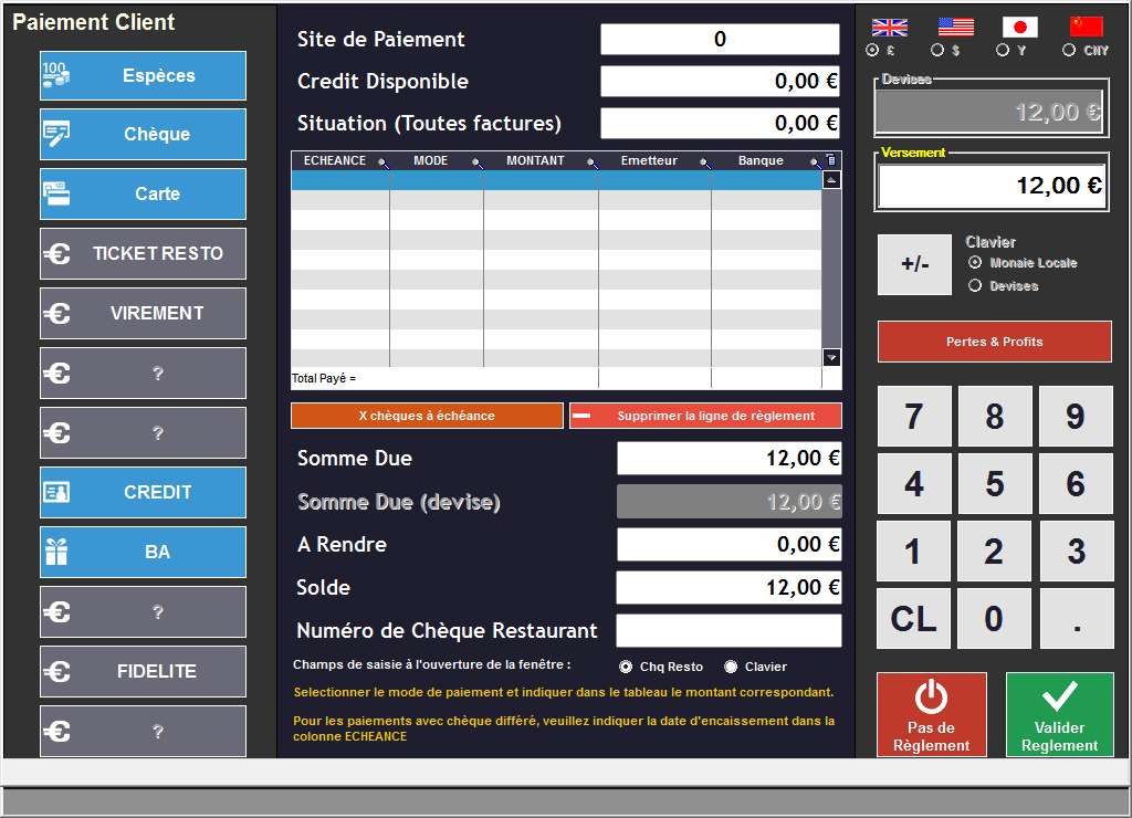 Si vous répondez Oui, le module d'encaissement apparaît :