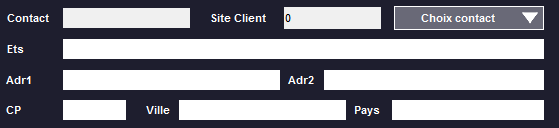 Cliquez sur Choix Contact pour choisir le contact. Le nom de l'établissement et son adresse seront automatiquement remplis. |