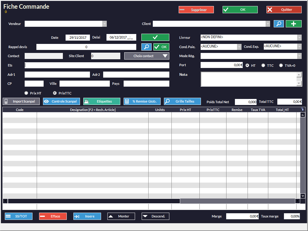 permet de mémoriser les étiquettes correspondantes aux articles de la commande. Pour les imprimer, vous devrez aller dans le menu Article -> Étiquettes -> Imprimer.