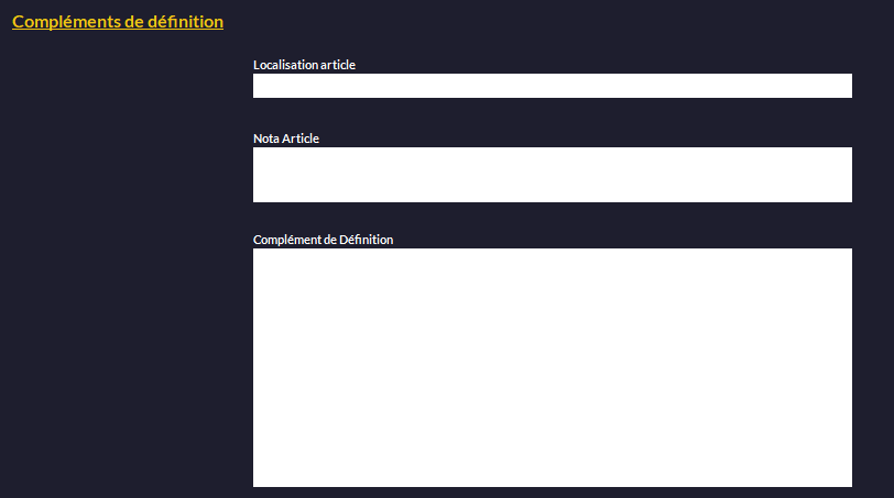 •Le Complément de Définition vous permet d'écrire un texte libre qui sera repris sur les tickets et factures.