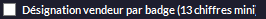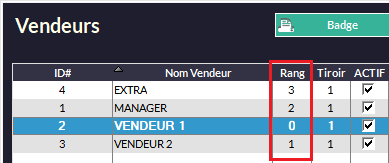 Permet de définir les quatre premiers chiffres pour créer des badges vendeurs (fonctionne avec le champ ci-dessous). Une fenêtre apparaîtra à l'ouverture de la caisse et vous scannerez le badge à ce moment-là.