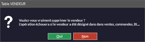 effacera le vendeur sélectionné (seulement s'il n'est rattaché à aucune vente) :