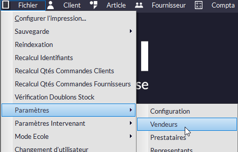 oDans Fichier -> Paramètres -> Vendeurs, cliquez sur le champ code du vendeur concerné et lisez sa clef : un code va s'inscrire (avec fenêtre de validation). Cliquez sur une autre ligne pour valider. Faites de même pour tous les vendeurs.
