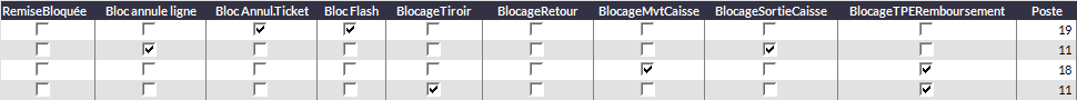 oBlocageMvtCaisse : le vendeur ne pourra faire aucun mouvement de caisse : dépense, retrait et apport d'espèces.