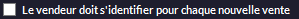 Par défaut, lorsqu'on choisit un vendeur en caisse, il reste affiché. Et tant qu'on n'en change pas, les ventes se rattachent à ce vendeur. Si l'on coche cette case, à chaque nouvelle vente, le nom du vendeur sera demandé.