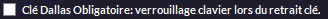 Code par défaut lors du retrait de la clef Dallas.