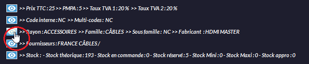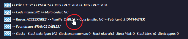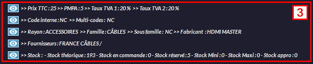 oDans cette zone sont résumées des informations essentielles concernant l'article : le prix, le stock, le rayon...