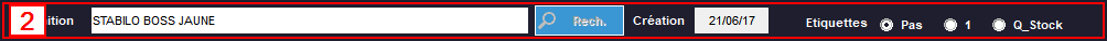 vous permet de mettre en file d'attente d'impression, le nombre d'étiquettes souhaité (vous les retrouverez ensuite dans Article -> Étiquettes -> Imprimer).