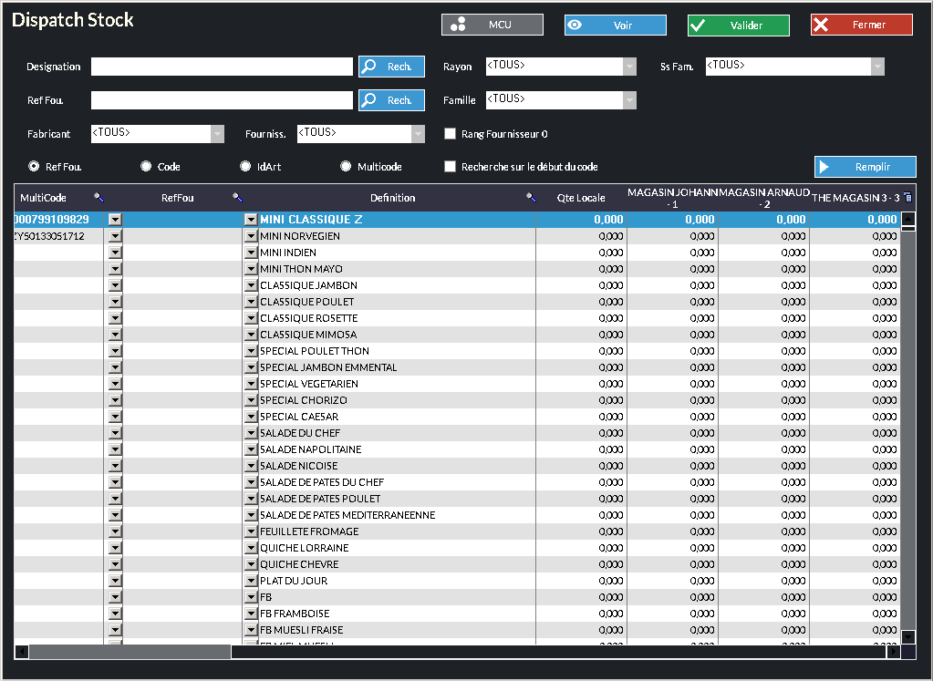 Cet outil vous permet de dispatcher les stocks du site 0 vers les sites distants.