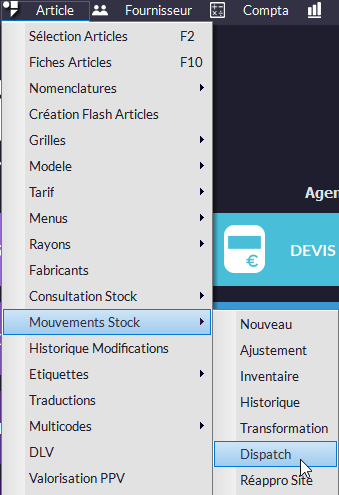 ☝La fonction Dispatch n'est disponible qu'avec la Gestion Centralisée des Stocks activée. Vous devez passer par la Hotline Kezia ou votre Agence pour activer cette option.