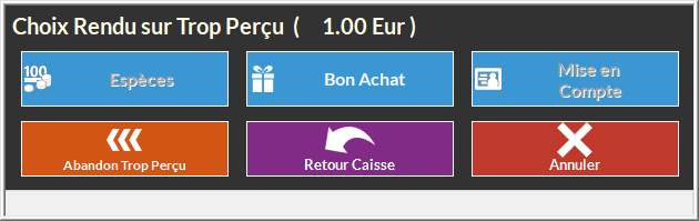 ▪Si le montant du ticket est supérieur au montant total de la vente, une fenêtre apparaîtra vous laissant plusieurs choix :