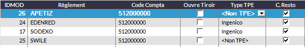 ▪Le mode de règlement Ticket Restaurant doit avoir été préalablement créé (voir Fichier -> Paramètres -> Modes Règlement Paiement).