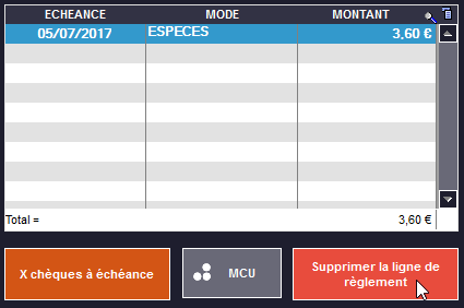 Imaginons dans ce cas que le client change d'avis et vous dise que ça l'arrangerait de payer les 5€ en carte plutôt qu'en espèces. Il vous suffira d'appuyer sur |