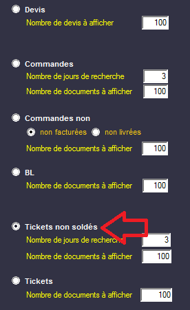 Vous pourrez aussi abandonner la créance d'un ticket non réglé (signifie que le client ne paiera jamais) en appuyant sur