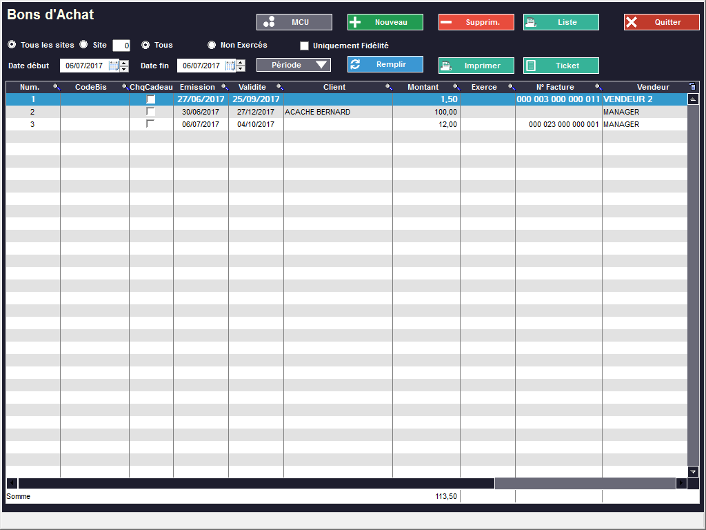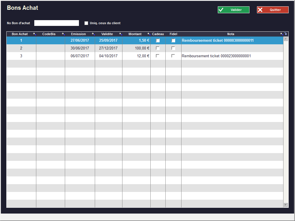 et la liste sera filtrée : n'apparaîtront que les bons d'achats de ce client.