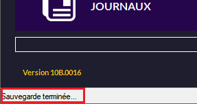 •Une fois la sauvegarde terminée, ce message apparaît :