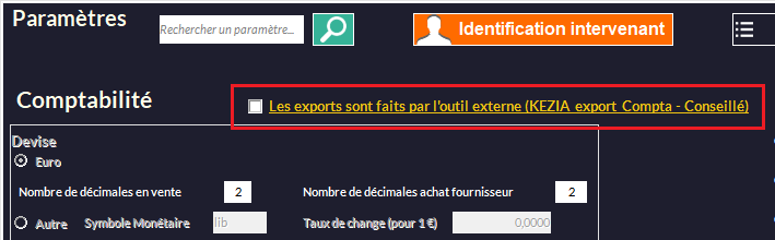 permet de configurer des codes comptables car le logiciel d'export n'est pas relié à Kezia II par défaut.