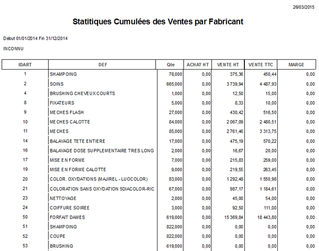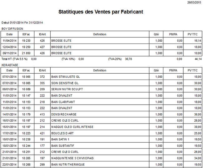 Cet outil permet d'établir un rapport de ventes triées par fabricant.