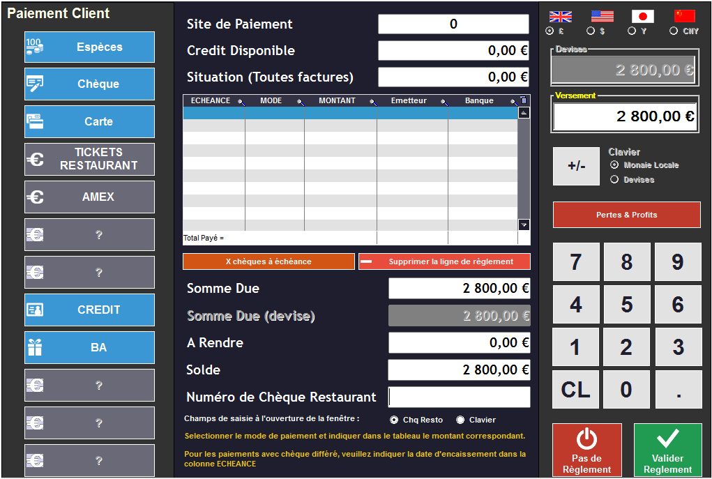 •Le module d'encaissement apparaît :