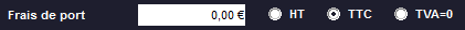 Vous pouvez définir des frais de port (Hors Taxe, TTC ou TVA 0).