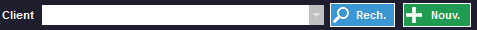 Vous devez mettre le nom du client avec le menu déroulant, le bouton Rech. ou créer un nouveau client avec le bouton Nouv.