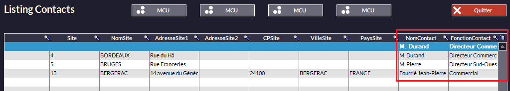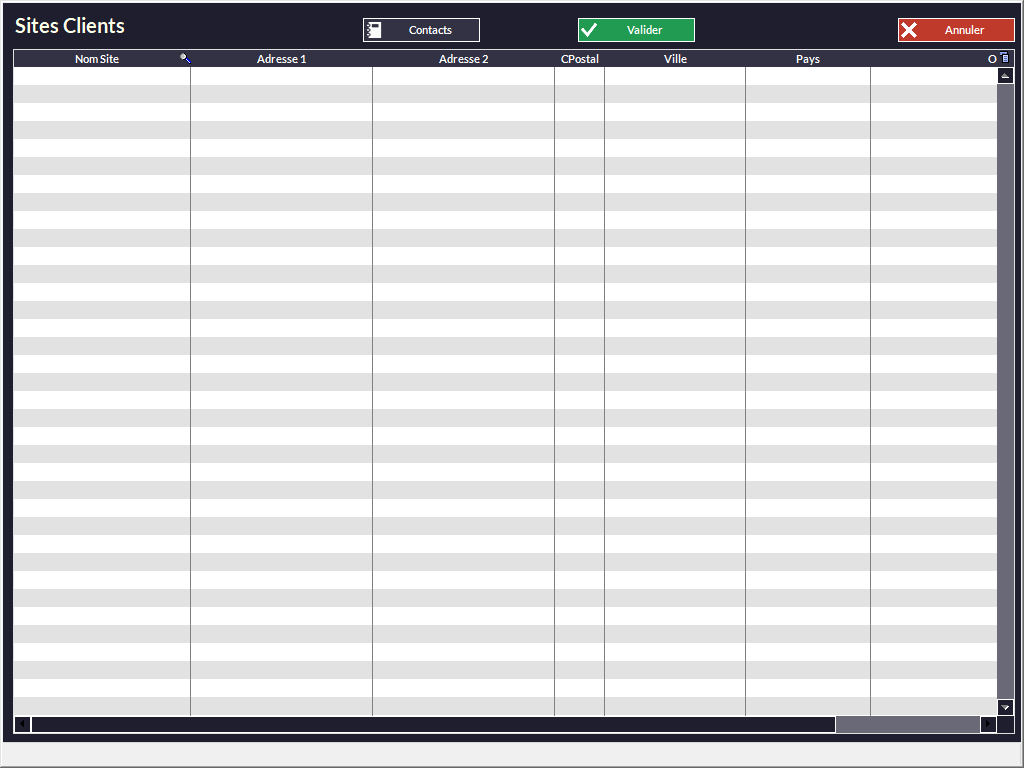 ouvre cette fenêtre qui permet de lister tous les sites clients entrés dans sa fiche :