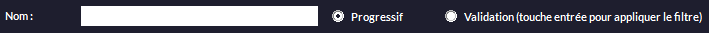 •Progressif changera la liste en fonction des premières lettres tapées (par exemple, si l'on commence à taper C pus R puis E, petit à petit, les noms ne contenant pas ces lettre disparaîtront).