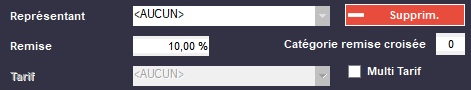 •Vous pouvez créer un taux de remise permanent pour le client. Il aura 20% de remise par exemple à chaque achat. Vous pouvez l'attacher à une catégorie de remise croisée (préalablement définie Gestion des Articles - Tarif - Remises Croisées).