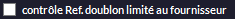 vérifiera s'il existe des références en doublons seulement dans les articles associés au fournisseur en cours. Autrement dit, elle permettra d'avoir des doublons de références à condition qu'elles appartiennent à des fournisseurs différents.