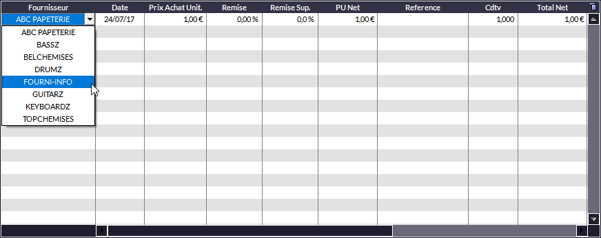 oTapez ensuite la Référence fournisseur de votre produit et le conditionnement de Vente (Cdtv - c'est la façon dont sont vendus les articles ; par exemple par 6), l'application calculera le Total Net.