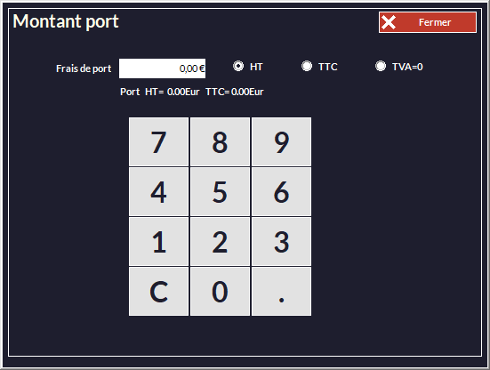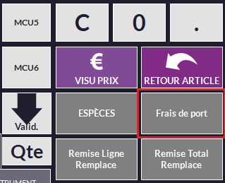 oLors d'un encaissement, vous pouvez appuyer sur ce bouton pour saisir le montant des frais de port :