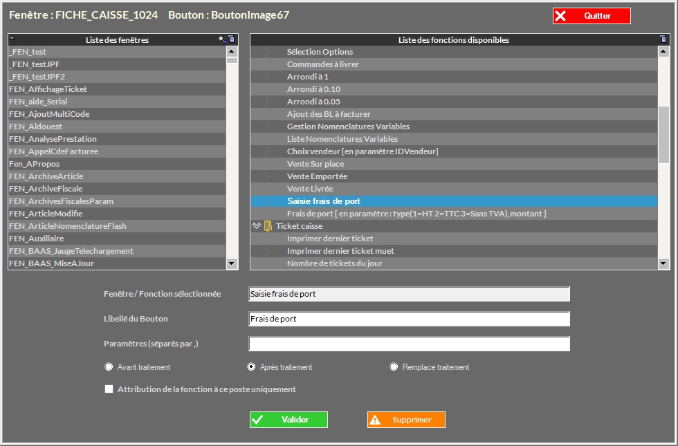 oChoisir le MCU Saisie Frais de Port dans la liste :