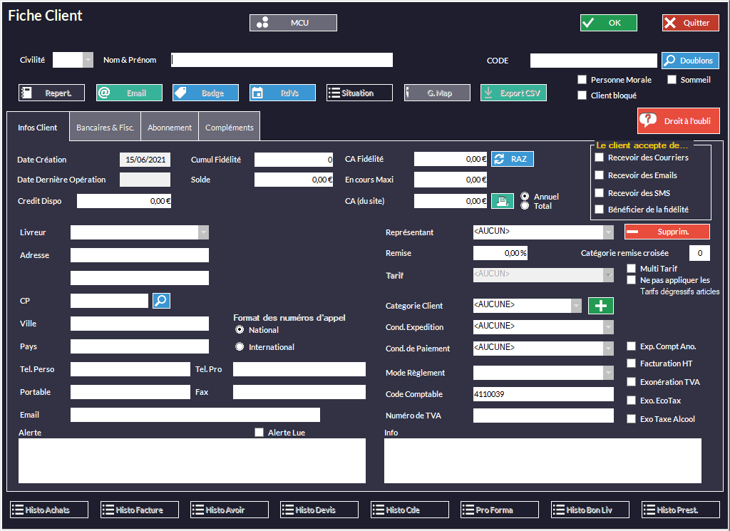 permet de créer un client (voir le chapitre Création Simplifiée) :