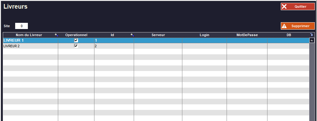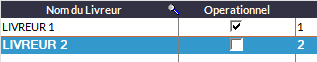 •Pour ajouter ou créer un livreur, il suffit de cliquer dans une case de la colonne Nom du Livreur et d'écrire.