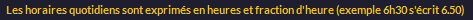 •Vous pouvez fixer des horaires quotidiens exprimés en fractions d'heures.