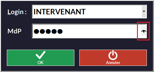 permet de voir le mot de passe, pour éventuellement vérifier votre frappe. Cliquez et maintenez appuyé le bouton gauche de la souris pour le voir (n'apparaît que si vous avez tapé quelque chose) :