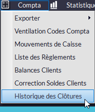 Cet historique vous permet de faire une analyse de toutes les clôtures réalisées. Vous aurez également la possibilité de réimprimer des tickets Z antérieurs.