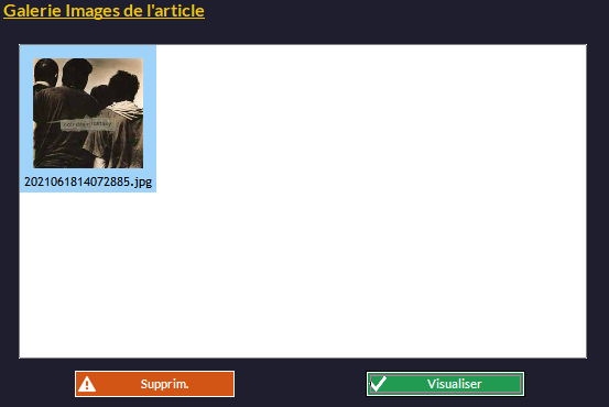 Sur cet page vous pouvez créer une bibliothèque d'images pour votre article. Le but est d'associer l'article Kezia II à une série d'images se trouvant sur votre ordinateur pour ensuite l'utiliser sur d'autres modules (un écran secondaire par exemple). Pour ce faire :